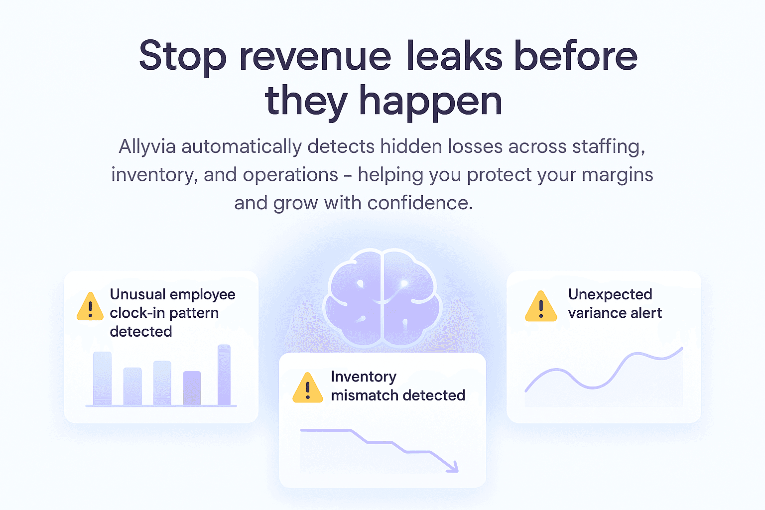 Allyvia automatically detects hidden losses across staffing, inventory, and operations, helping you protect your margins and grow with confidence.